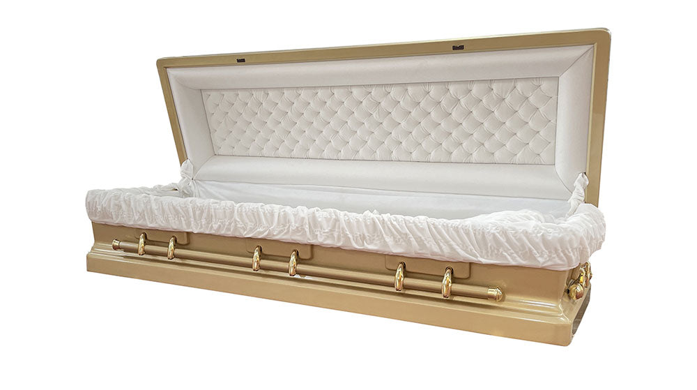 As you open the casket, be mesmerized by the interior adorned in delicate white satin fabric, carefully chosen to exude a sense of tranquillity and serenity. The simplicity of the design enhances the purity and reverence of the final resting place.